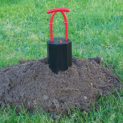 Sæt fælden ned i hullet og dæk den til, så lys og luft ikke trænger ned i gangen.