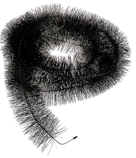 Stiv børste, som kan bruges i tagrender, nedløbsrør, under beklædning og andre steder, hvor man ønsker at lukke af for rotter og mus. Børsterne er fremstillet af kulfiber, og gør det vanskelig for rotter og mus at gnave sig igennem. Kerne af rustfri metal. Musestop Børsten kan tilpasses i længden ved afklipning med knibtang el. lign. Kan også anvendes i tagrenden, som beskyttelse mod blade, kogler mv. Diameter: 10 cm. Længde: 4 meter. |