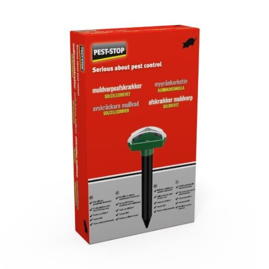 Med et soldrevet, genopladeligt 2200mAh litiumbatteri i høj kvalitet udsender den soldrevne muldvarpeskræmmer forskellige soniske impulser gennem jorden i et cirkulært mønster for at skræmmer muldvarpe bort. Udsender lydimpulser med forskellig frekvens gennem jorden for at afskrække muldvarpe.