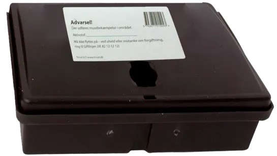 Smart boks til ilægning af musemiddel. 1 nøgle medfølger pr. boks. Boksen leveres med påsat etikette med tekst om advarsel. Aktivstoffet som indlægges i boksen kan noteres på den påsatte etikette.