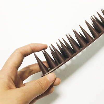 Undgå at fuglene lander på tagryggen, gelænder, stakit eller lign.Fremstillet i kraftig flexibel plast. Med for-borede huller.Monteres nemt på alle underlag.Kan bøjes for nem tilpasning.43 x 4 cm x 12 stk i colorbox = 5,16 m.