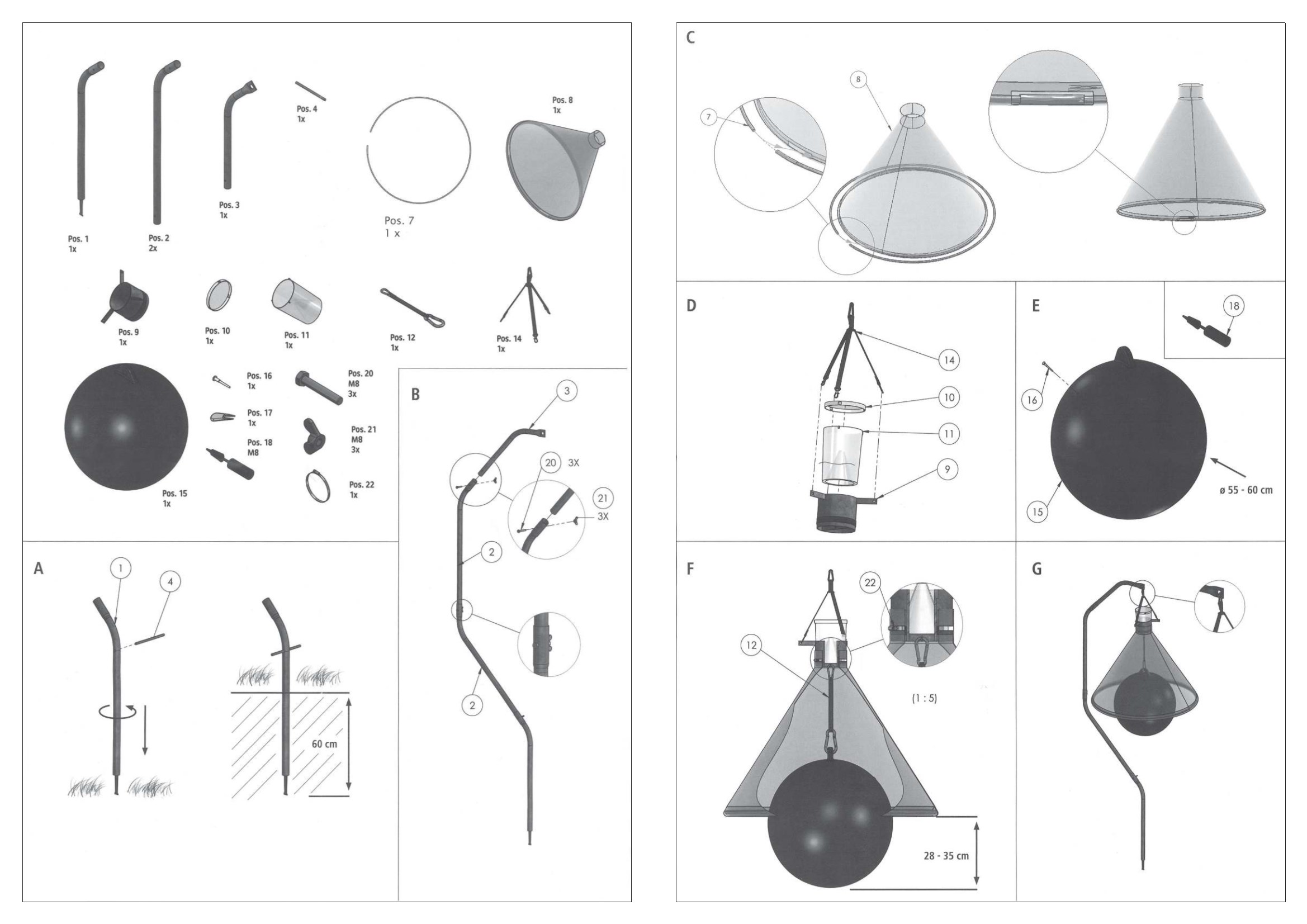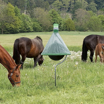 Sollyset opvarmer den sorte plasticbold. Den varme bold tiltrækker hestebremserne, som tror det er en hest. Derefter opdager hestebræmserne at de ikke kan stikke i bolden, og flyver igen. Ifølge deres natur vil de forlade bolden ved at flyve lodret op, dette vil føre dem til toppen af fælden, hvor de fanges og dør. | |||||||||