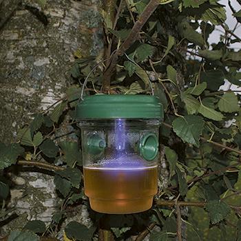 Hvepsene tiltrækkes om dagen af væskeblandingen.