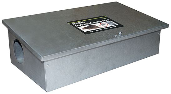 Rottegiftkasse af galvaniseret plade med 2 indgange.